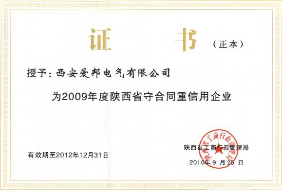 • 陜西省守合同重信用證書